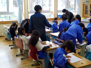 6年生は、子どもたちの机を回って、プリントの答え合わせをしてあげたり、解き方を教えてあげてくれたりしていました。