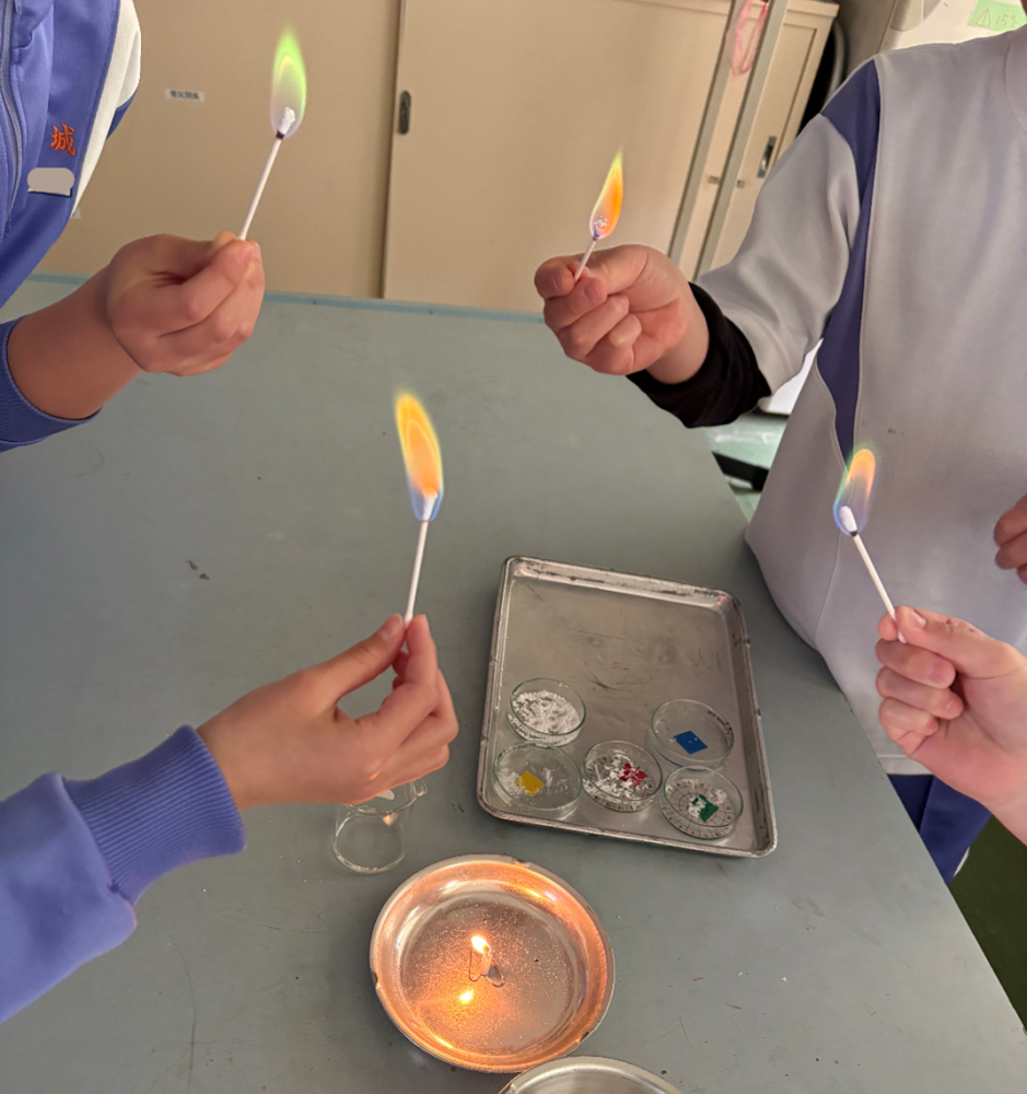 理科の学習では、薬品によって炎の色が変わる実験を行いました。今回は、理科支援員の先生にも指導していただき、安全面に十分配慮しながら実験を進めました。火の取り扱いや薬品の使い方について事前にしっかり確認し、落ち着いて実験を行うことができました。