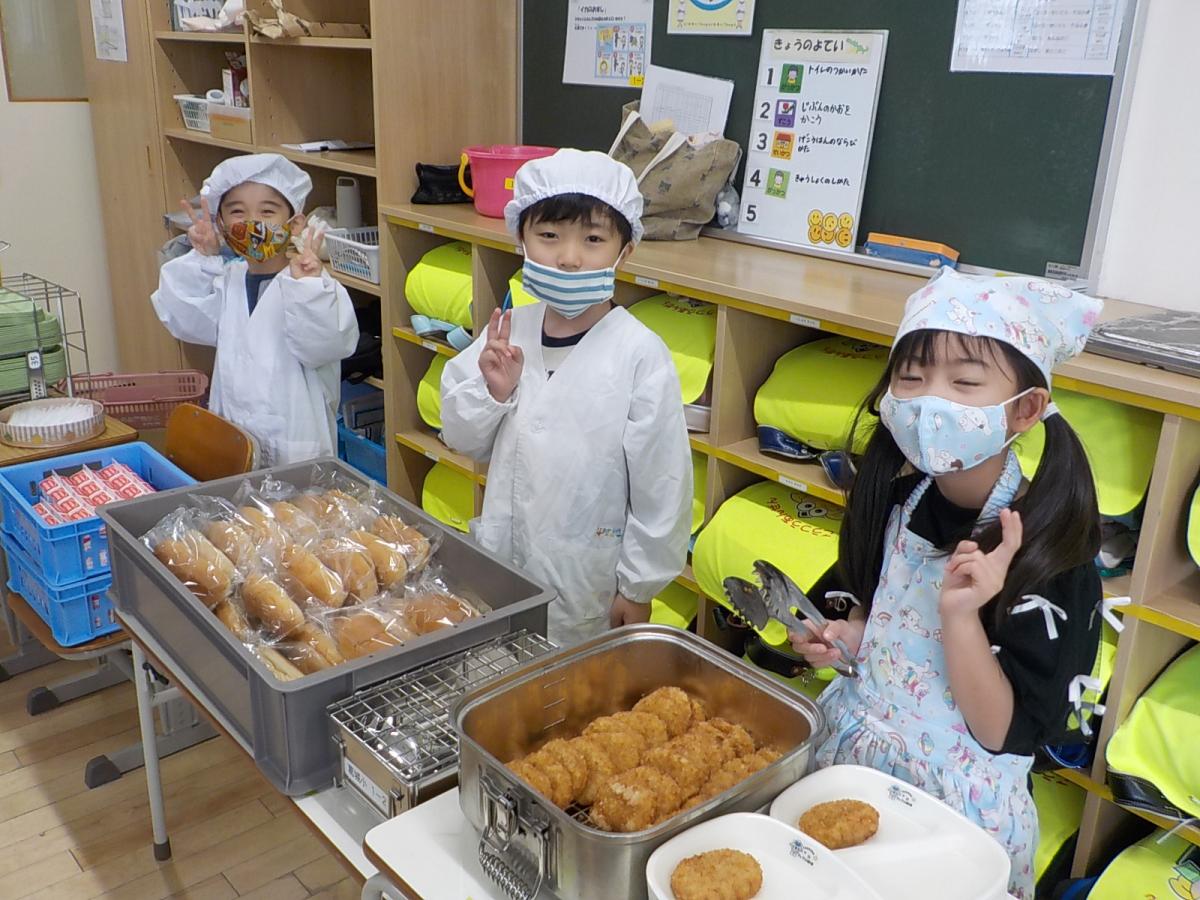 今日で2回目の給食。さっそく給食当番のお仕事がありましたが、きまりをまもってしっかりとお仕事できました。