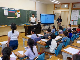 今日は、4~6年生の9クラスで行われ、興味深いお話に、子どもたちは楽しそうに聞き入っていました。