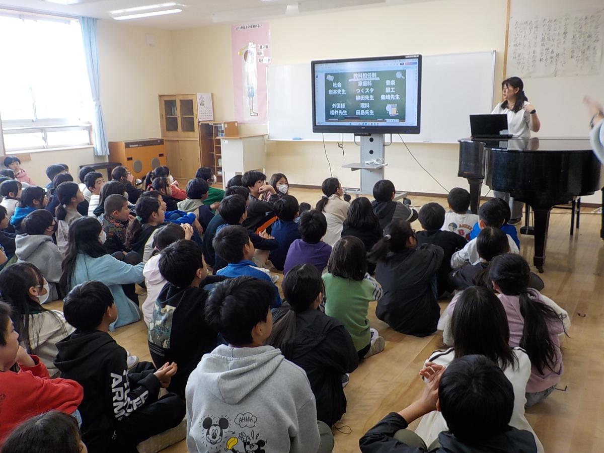 6年生の学年集会におじゃましました。学年の先生方との顔合わせ、自己紹介、なんでも質問コーナーなど、とても和気あいあいとした雰囲気でした。話を聞く姿勢も、お手本です。
