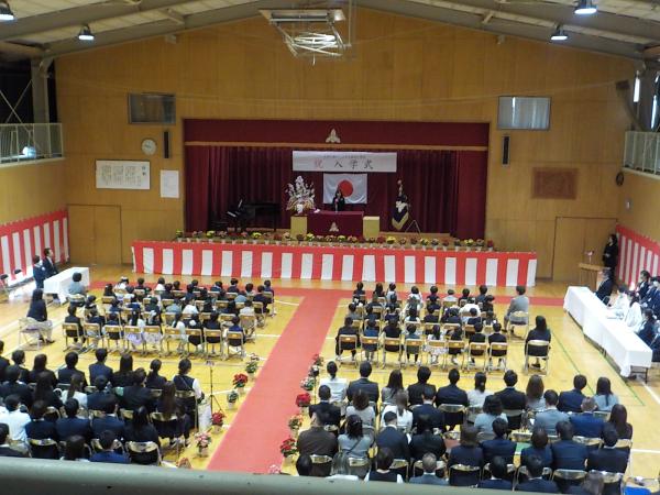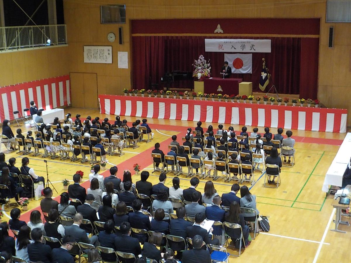第80回の入学式が行われ、68名の新入生が入学しました。式中もしっかりとした態度、呼名された時にも、元気に返事ができました。