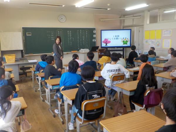担任の先生の緊張の出会いのあと、和気あいあいとした雰囲気に。元気なあいさつが気持ちよいです。