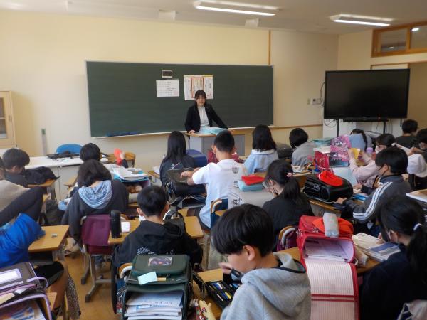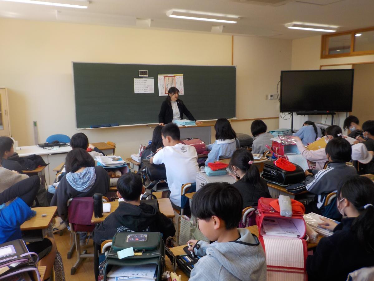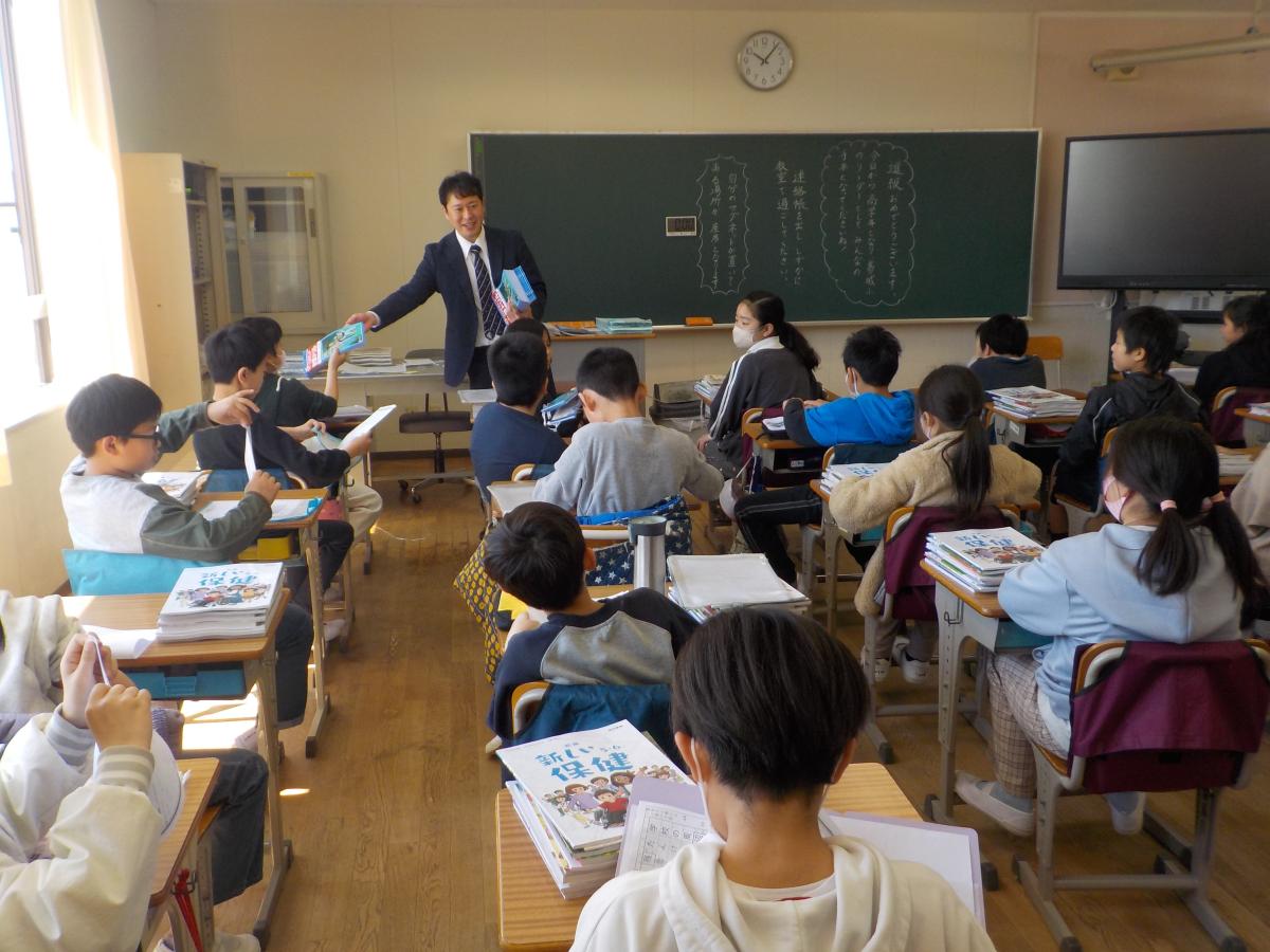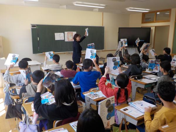 担任の先生との学級活動。配付された教科書にとっても興味あり、です。