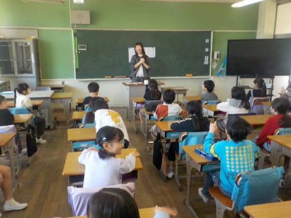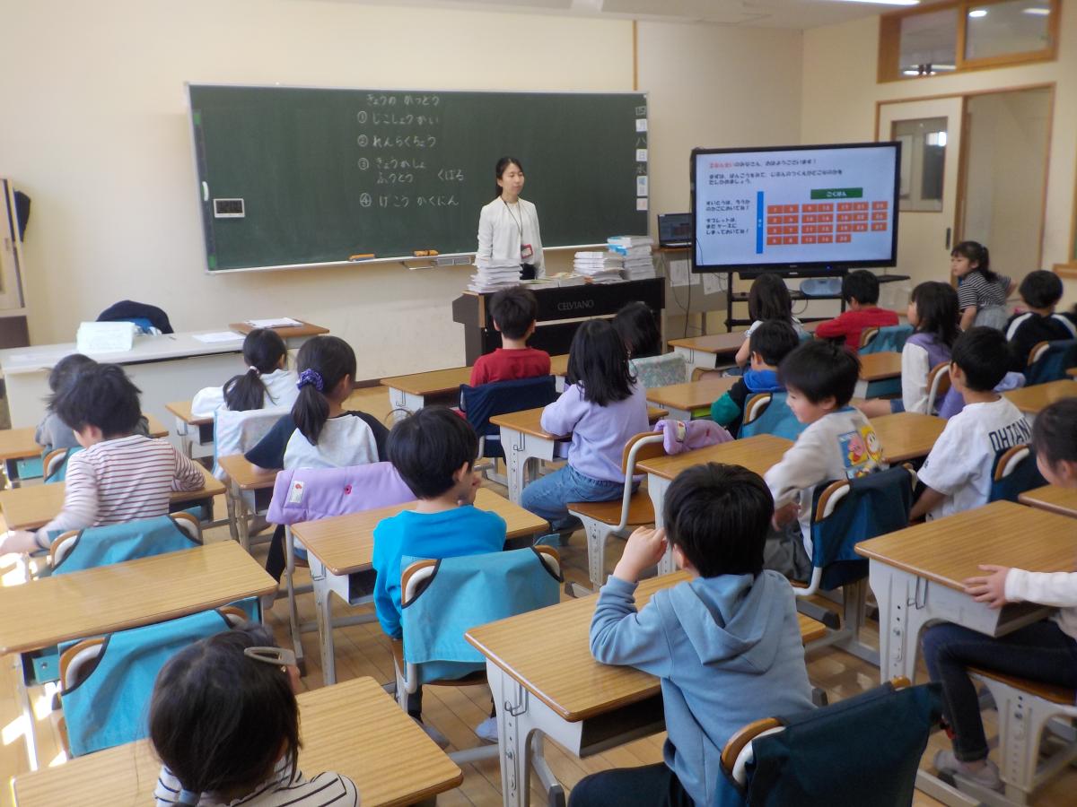 担任の先生との初めての学級活動です。笑顔の出会いとなりました。