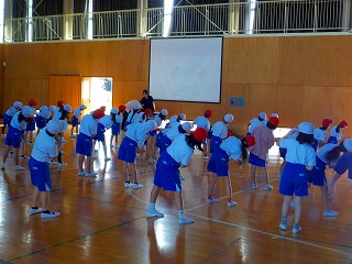 体育館では、運動会にむけて、2年生がダンスの練習をしていました。