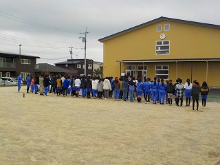 子どもたちはグラウンドに並んで、気持ちを込めて、とても元気に練習をしていました。