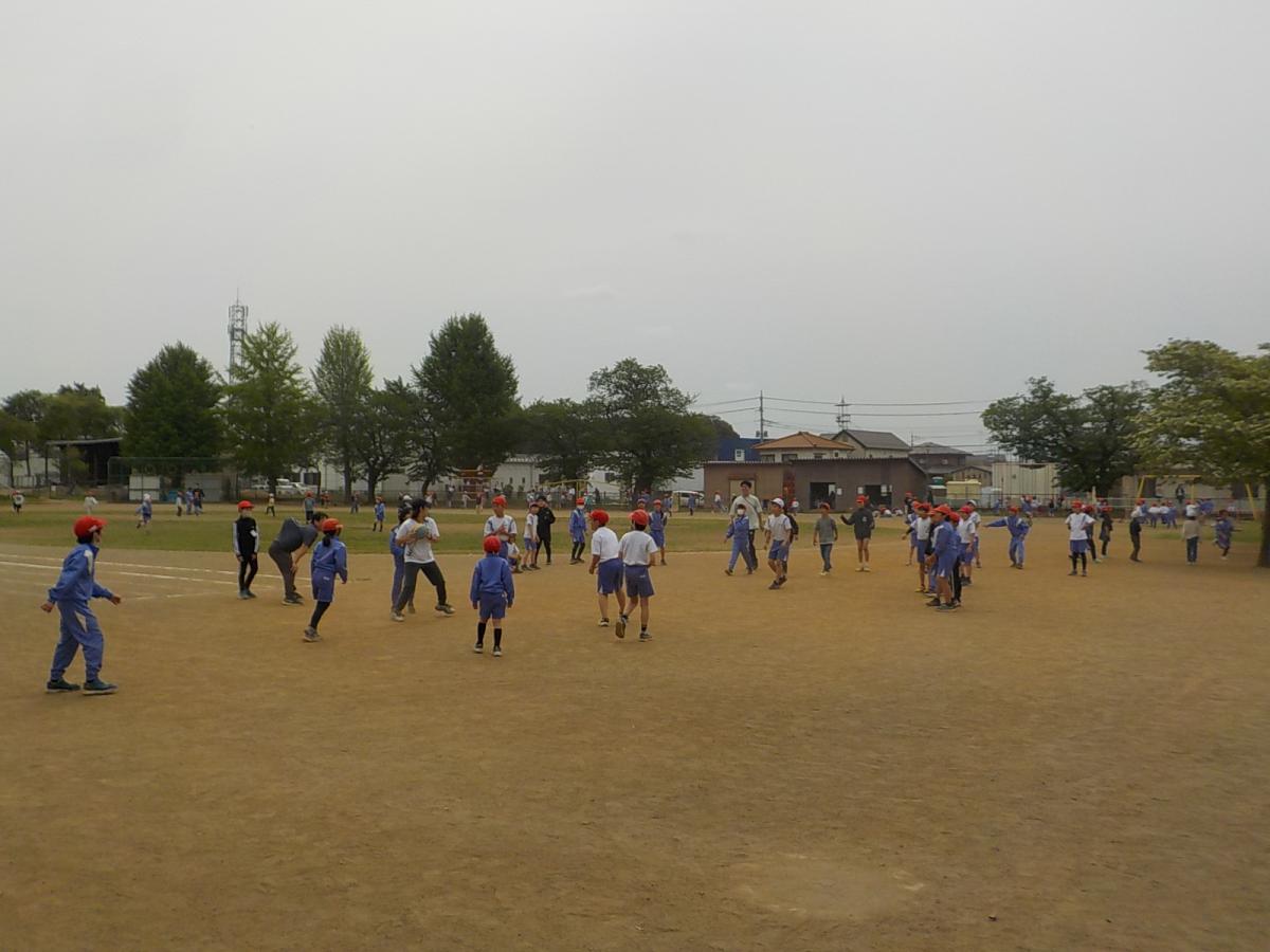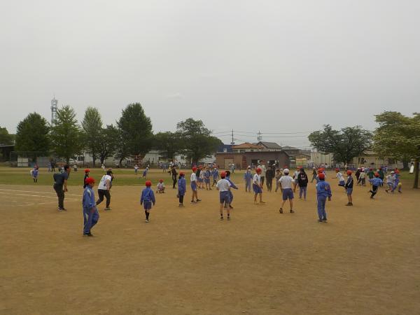 1年生の50m走の練習です。元気いっぱい。笑顔でゴールです。