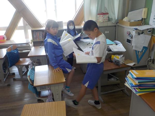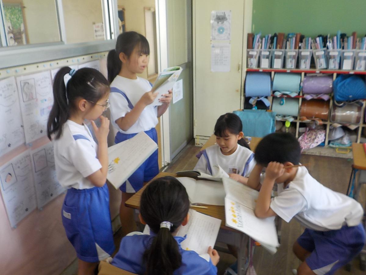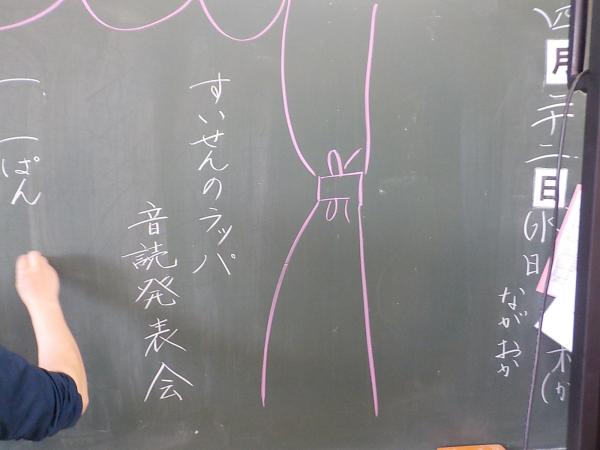 すいせんのラッパ の音読発表会に向けて、グループで練習中です。