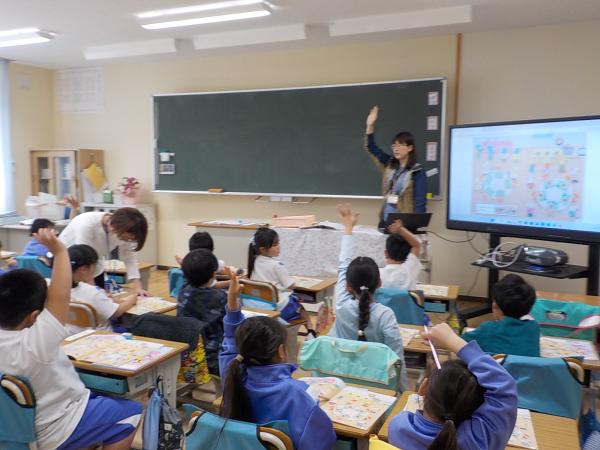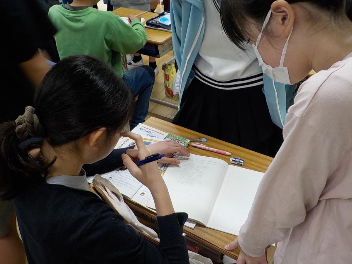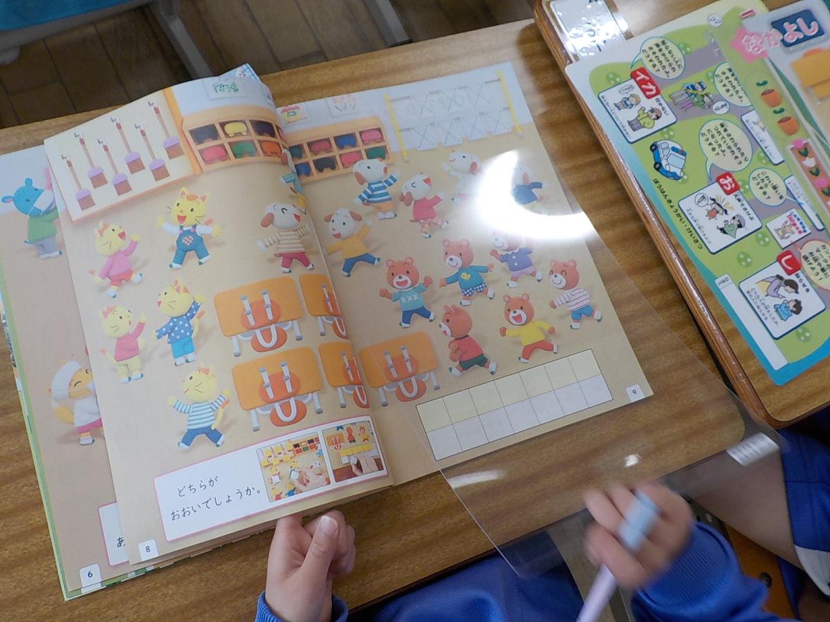 算数の時間です。新しい教科書を開いて、先生の質問に答えていきます。