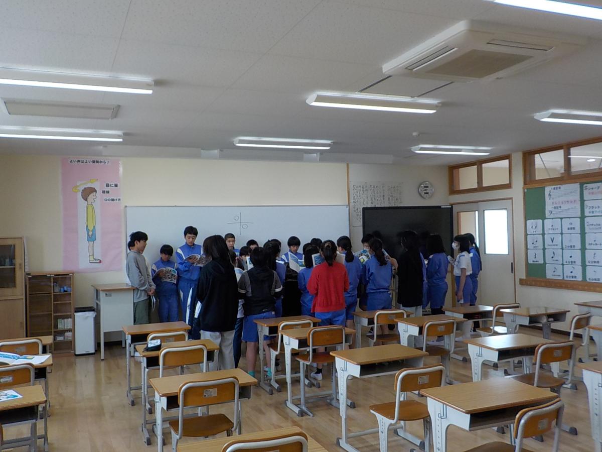 音楽室から、元気な歌声が聞こえてきます。先生のピアノの周りに集まり、「つばさをください」を歌っています。きれいな歌声です。