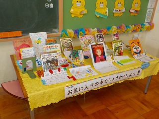 今は、2年1組が作った作品が紹介されていました。”あつ本”に来た子どもたちの中には、帯を見て手に取り、読んでいる子たちもいました。