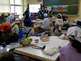 「生産から片付けまで(食べ物が私たちの口に入るまで)」には、たくさんのエネルギーが使われていることなどを具体的に学習したあと、環境に意識しながら野菜スープを作りました。