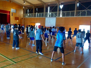体育館から大きな音楽が聞こえてきました。覗いてみると、6年生が運動会の練習をしていました。
