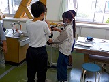 4時間目、理科室では6年生が実験をしていました。