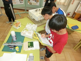「柳橋プラン」の学習で、未来の柳橋の模型づくり班の児童が、つくばサイエンス高等学校の建築領域の先生から模型づくりの方法を聞いたり、作成における悩みの相談をしたりする活動を行いました。高校には、参考になる模型がたくさんあり、たくさんのアイディアをいただくこともできて、3人の児童は、満面の笑みで帰校しました。柳小まつりに向けた、これからの活動が広がりそうです。