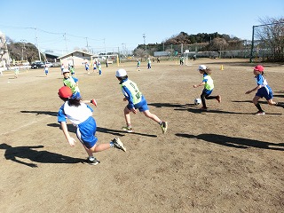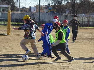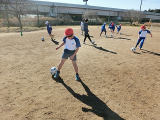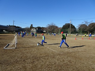 つくばFCのコーチ3名をお招きし、ブロックごとにサッカーを教えていただきました。ボールの扱い、二人組でのボール回しをして、試合を2回行いました。「大事なことは、ボールを追うのではなく、相手の空いている部分を見つけることだよ。」という助言をいただき、声を掛け合うことも学びました。コーチにたくさん褒めていただき、自信もつきました。楽しい時間をありがつございました。