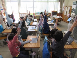 4時間目の様子です。4年生は、算数の問題を自力で。5年生は、遠隔授業の準備で自分のおすすめの場所について相手校の児童と会話を深めることを考えて。6年生は、問題を自力解決し、ペアになり考え方を伝え合い。高学年はさすがです。学習への自分の向き合い方が素晴らしいです。