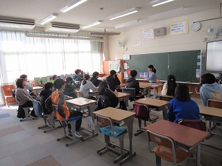 おはなしそよ風様による「読み聞かせ」がありました。今回は、今年度最終日ということで、6年生からお礼を伝える場面がありました。6年生は、1年生の時に初めて読んでいただいた「おばけの本」の話を、再度聞かせていただきました。「大きくなったね。」というおはなしそよ風の方の声。本当に長い間、おはなしの世界に温かく子供たちを誘ってくださり、感謝しています。ありがとうございました。そして、これからもよろしくお願いいたします。