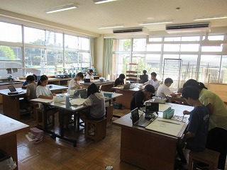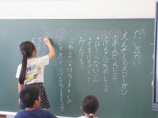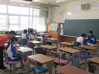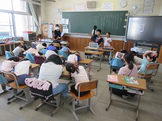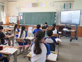 5年生も6年生も話し合いの学習をしていました。模擬動画を視聴し、ポイントを確認していました。グループ学習を始めた6年生は。「話し合いには、笑顔が大事だね。いつもの自分とは立場を変えて、ちょっと自分を高めて参加するんだね。」などという会話が聞こえてきました。学校を引っ張る活動でも役立ちますね。