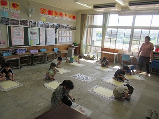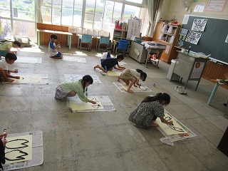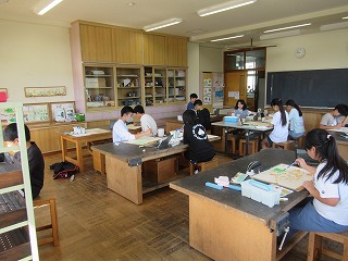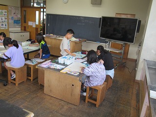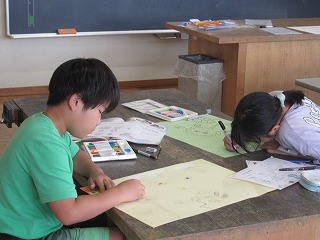 芸術祭に向けた絵画作品に取り組んでいます。1年生は、大胆に墨をつかってみんなで飼っている「ざりがに」を描きました。4年生は、「思い思いの山」を考えて、楽しい想像の世界を広げていました。6年生は、学校の思い出の場所を描いています。淡い同色の絵具で何色もの色を作って、一筆一筆丁寧に色を付けていました。完成に向けて、みんな真剣に頑張っています。