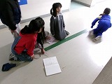 先生の伸長や階段の長さ、廊下の長さを測る班など、それぞれの班が興味をもったものを測っていました。
