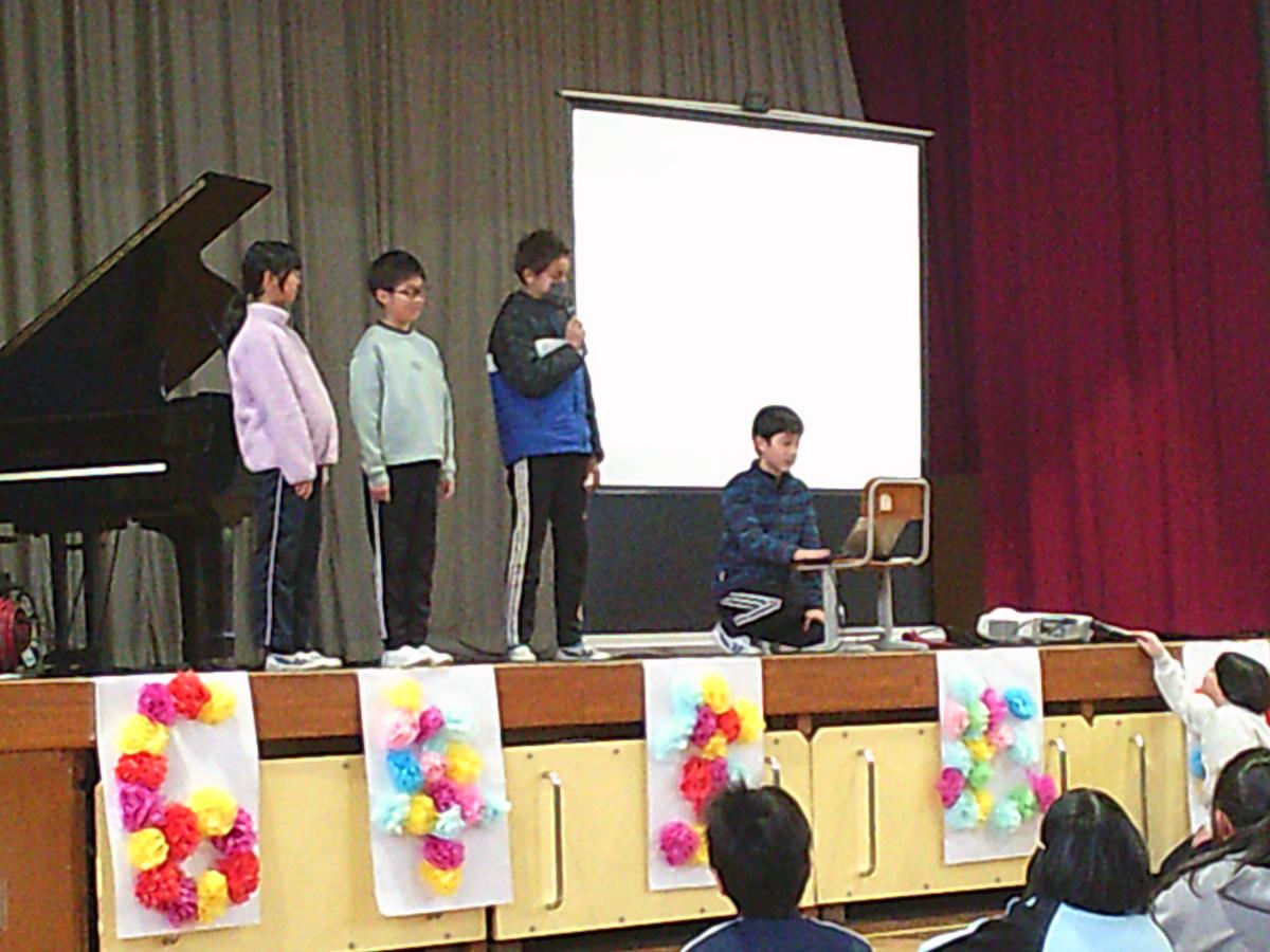 子ども達は、冬休み明けから実行委員会を立ち上げ、プログラムの内容や飾り付けなどを話し合いながら企画し、実施計画を立て、今日まで一生懸命準備を重ねてきました。併せて、「優しいあの子」の合奏練習にも励み、心を一つにして練習を積み重ねてきました。