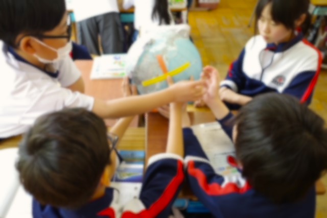 5年生は、社会科で日本の国土についての学習を進めていきます。今日は、地球儀を動かしながら、日本の位置や方位の表し方について学習しました。4年生の社会科では茨城県のことを主に学習してきた5年生の子供たち、平面の地図と地球儀の違いに気づいたり、初めて知る国を見つけたりと、ワクワクをたくさん感じた時間でした。