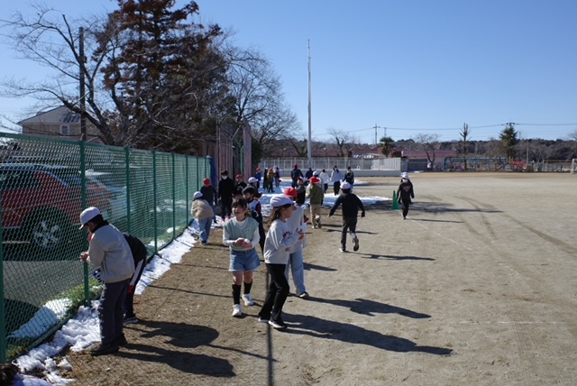 昼休み、目を輝かせながら校庭に飛び出した子供たちのお目当ては、この週末に降った雪です。日中晴れたこともあり、校庭の雪は少なくなってしまいましたが、雪合戦をしたり、雪だるまを作ったりなど、思い思いにその感触を味わっていました。休み時間を終えて教室に戻ってくる子供たち、雪で遊んだ手は真っ赤になっていましたが、絶好の遊び道具の出現に大満足の表情でした。