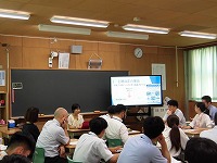 今日は、市内で一斉の研修会が行われました。 谷田部中学校で行われた分科会では、本校で行った授業の様子を市内の先生方にむけて発表しました。
