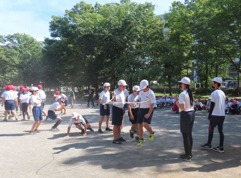 各校が8の字飛びにチャレンジして、記録を競い合った後、レクレーションを通して仲を深めました。