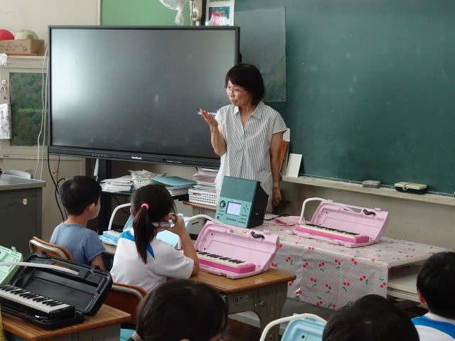 1年生では、講師の先生をお迎えして、鍵盤ハーモニカの使い方を学びました。