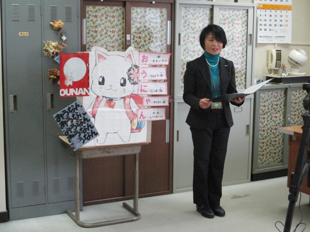インフルエンザの感染予防のため、オンラインでの実施となりましたが、頑張った児童の表彰や代表集会委員からの連絡、生徒指導主事のお話に続き、