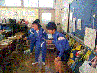 2学年の図画工作科の時間です。画用紙を二つ折りにし、のりではり合わせています。その後どうするのかな?と見ていると…。子どもたちは思い思いの絵を描き、その絵を切り取って一部分にあなをあけました。糸のついた棒をくっつけたら、紙けんだまのできあがり(^▽^)/ あなの大きさや形、糸の長さなども工夫ポイントのようです。