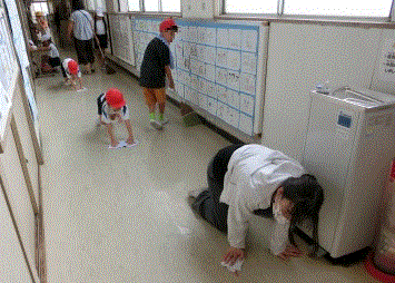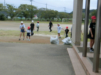 9月4日(木曜)縦割り班のみんなが集まり、9月・10月の清掃の打合せをおこないました。打合せ終了後は、早速おそうじに取りかかります。2つの班の子どもたちには校庭の草取りをお願いしました。15分の間に、それぞれの班が取った草で75リットルの袋がいっぱいになるくらいがんばって活動してくれました。ありがとうございます。