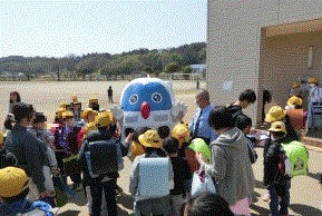 3月24日(火曜)、栗原小学校にフックン船長が来てくださり、登校時には子どもたちの安全のために見守ってくれました。また、一斉下校のときには「ありがとう☆栗原小学校」のカードを持ち、下校する子どもたちを見送ってくれました。校舎から出た子どもたちは思わぬお客様に大喜び(^▽^)/ フックン船長、ありがとうございました。