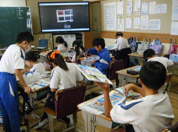 4学年の図画工作では、版画を制作しています。すりが終わり、作品が乾いたら、背面から水彩絵の具で色をのせていきます。日に透かすとステンドグラスのように色が映えて、すてきです。完成が待たれますね(o^―^o)