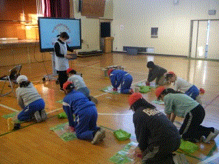 12月10日(水曜)6校時、5学年の子どもたちが救急救命講習を受けました。「もしも、目の前で人が倒れたら、あなたはどうしますか」という養護教諭の問いかけに、子どもたちは自分には何ができるだろうかと真剣に考えていました。教材を使って、心肺蘇生の練習をおこないましたが、思ったより強い力でないと音が出ないことがわかり、一生懸命にPUSHする子どもたち。AEDの使い方についても説明を聞きました。もしも…の時には、“おそれずに”行動したいと思います。