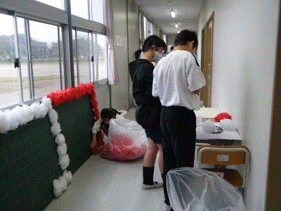 黒板におはなが次々とつけられていきます。6学年の子どもたちが得点板の飾りつけをしているところです。ここ数年間の運動会・スポーツフェスタでは、紅白で得点を競うことはありませんでした。今年度は6学年児童の強い願いもあり、得点化することになりました。10月25日には真新しい得点板が掲示されます。どうぞお楽しみに。