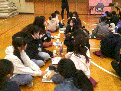 11月27日(木曜)5・6校時、体育館で6学年の子どもたちがにぎやかに意見交換をしています。筑波大学のご協力を受け、体験をとおしてアントレプレナーシップについて学ぶ活動がスタートしました。第1日めは座学中心でしたが、子どもたちのリアクションも活発でテンポよく進みました。ビジネスのタネは身近な困り事にヒントがある! 翌日からの1週間、そんな視点をもって生活してみようと課題が投げかけられました。