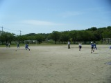 業間休みが始まってすぐ、外から職員室をのぞいてだれかを探している様子の子どもたち。「先生!早くサッカーしよう~」と誘いに来てくれたのです。きれいに晴れた青空のもと、みんなでボールを蹴って遊びました。
