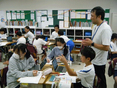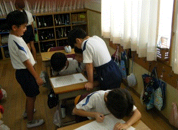 10月10日(金曜)には第1学期終業式が予定されています。3学年の教室をのぞくと、子どもたちは「1学期をふりかえって」という作文を執筆中。4月からこれまでで自分ががんばったことやできるようになったことを客観的にとらえ、次のステップに生かそうとしていました。ていねいな字で作文している友達のそばに行き、「上手だね」と声をかけることのできるすてきな子どもたちです(o^―^o)