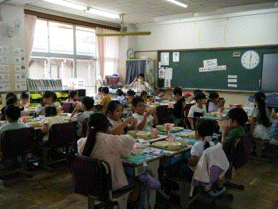 1学年の給食の様子です。9月24日のメニューは、やさいのごまみそしる、ぶたにくのしぐれに、さけメンチカツでした。ダイコンやゴボウなど噛みごたえのある食材が多かったので「かみかみ給食の日」かな?と思ったのですが、違いました。今日9月25日は「実りの秋給食」です。どんなメニューかな? 楽しみです(^▽^)/