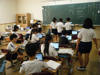 9月17日(水曜)、3学年国語科の時間です。今日はPCの機能を活用して「友だちの言葉のよいところ」を見つけ、感想を交流する予定でした。ノートからPCへの詩の入力やイラストの挿入のために時間がほしいとのこと、子どもたちは教えたり教わったりしながら完成に近づけていました。次の交流会の時間が楽しみです。