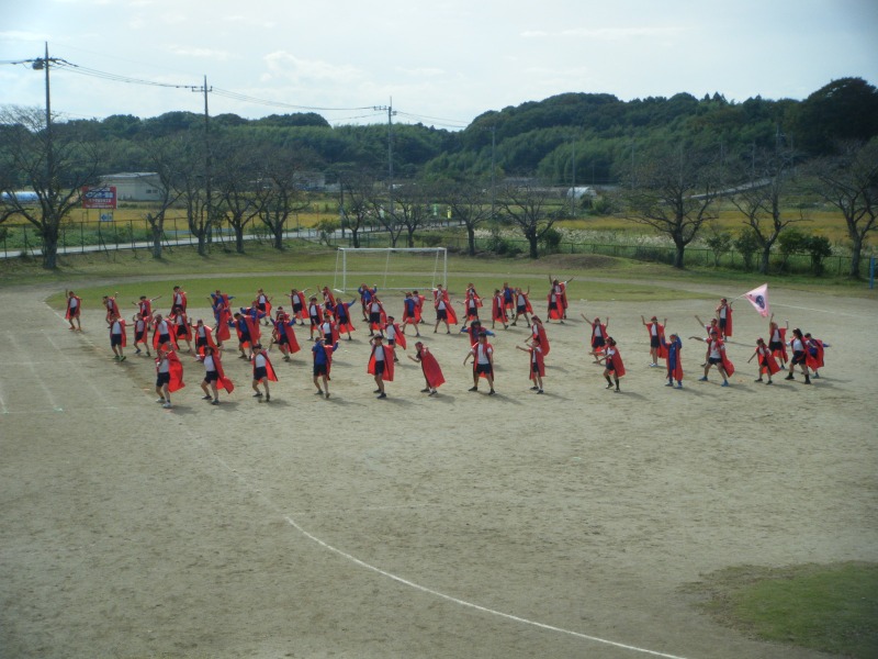 10月29日2校時、校庭で6学年の子どもたちがソーラン節を力いっぱい踊っています。本日はアルバム用の撮影をおこないました。撮影用に6学年だけの隊形を新たに組み直しましたが、子どもたちはすぐに覚え、スムーズに移動していました。さすがは6年生(^▽^)/ 踊りもすてきでした。
