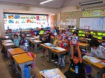 グラウンドいっぱいに広がって、児童の進行のもとで楽しく「学年鬼ごっこ」をしていました。自主的に行事の運営を行っており、素晴らしい企画です。