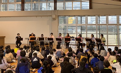 11月25日、プレイルームにて堀部一寿先生とアンサンブル フラウト・ドルチェの皆さまをお招きし、3学年行事「わくわくリコーダーコンサート」を開催しました。