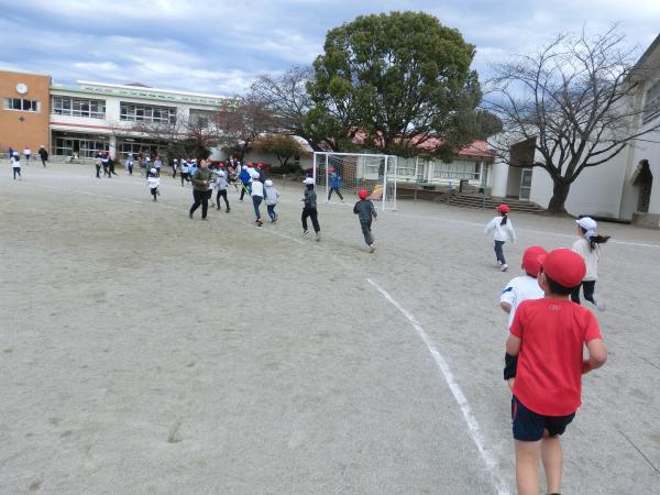 持久走の練習が始まっています。1年生は、体育の時間のほかにも、火曜日の中休みに3分間走っています。「〇周走れた!」と自分の目標に向かって頑張っています。寒さに負けない、丈夫な体をつくっていけるよう、応援よろしくお願いします。