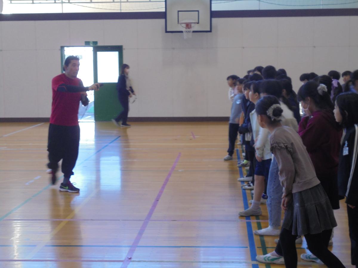 PTA主催で、剣護身術の黒木先生をお招きし、「命を護る」ための出前授業を3・4年生対象に行いました。昨年度に続く取り組みで、子どもたちは「自分の身を護る力」を身につけることを目的に、体を使って学びました。実際に体育館で走りながら、声を出し、逃げる方向を考えるなど、子どもたちは真剣に取り組んでいました。