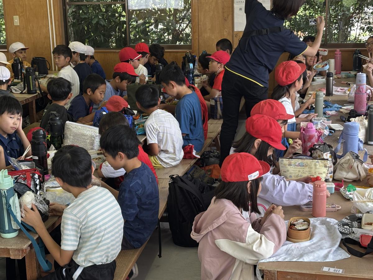 大津窯晃に着きました。まず班ごとにお昼ご飯のお弁当を食べています。保護者の皆様、お弁当作ってくださりありがとうございます。
